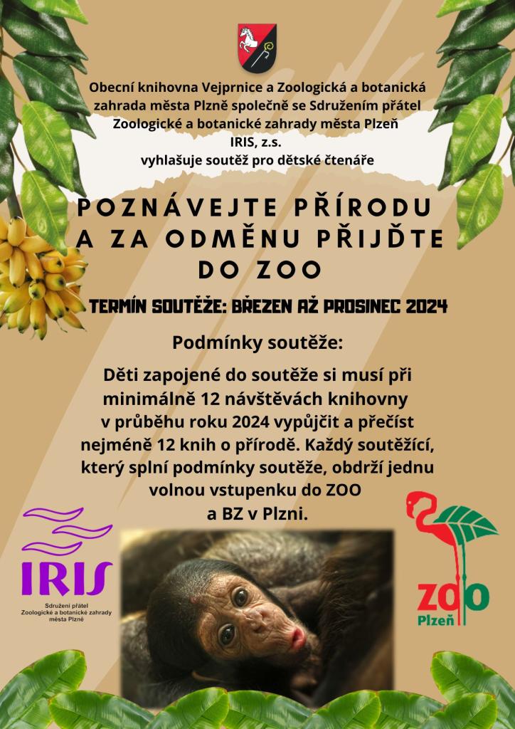 Obecní knihovna Vejprnice a Zoologická a botanická zahrada města Plzně společně se Sdružením přátel Zoologické a botanické zahrady města Plzeň IRIS, z.s. vyhlašuje soutěž pro dětské čtenáře.