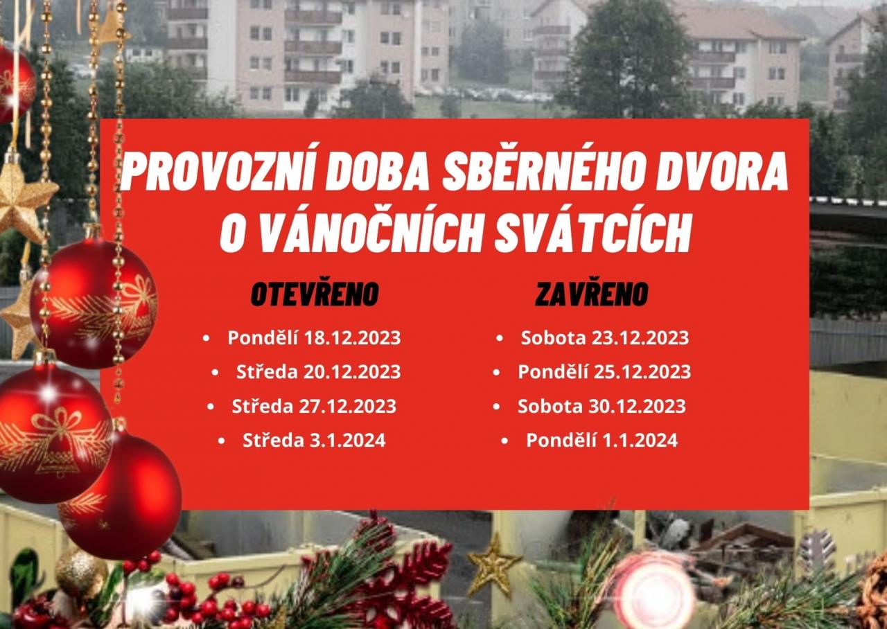 Dovolujeme si Vás informovat o provozní době Sběrného dvora Vejprnice v době Vánoc 2023.