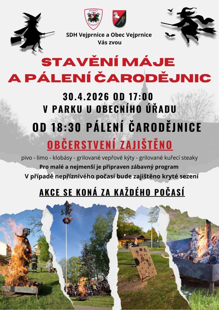 Stavěná máje a pálení čarodějnic - 30.4.2026