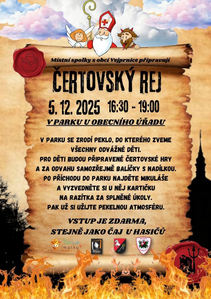 Peklo se opět otevře všem odvážným dětem — čekají čertovské úkoly, hry a odměny, karta na razítka od Mikuláše a hlavně skvělá atmosféra! Vstup i teplý čaj zdarma.