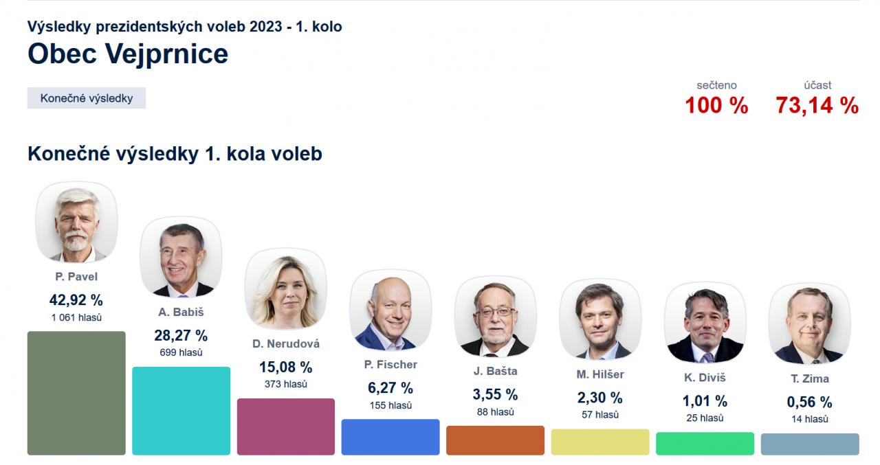 VÝSLEDKY 1. KOLA VOLEB PREZIDENTA ČR 2023 V OBCI VEJPRNICE