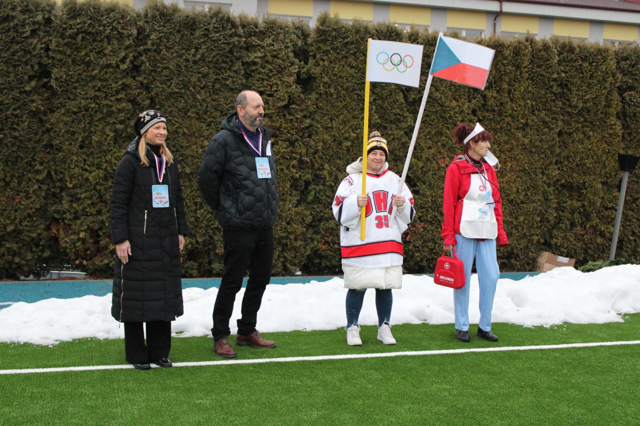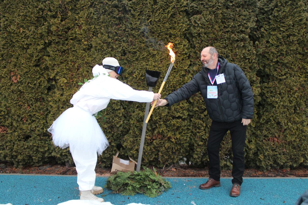 Při slavnostním zahájení zapálil olympijský oheň starosta obce Pavel Karpíšek a celodenní olympijské klání tak mohlo oficiálně začít.