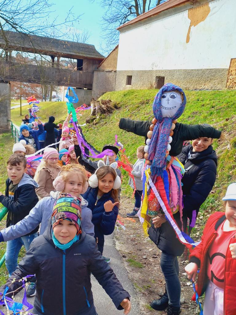 Vítání jara - vynášení Morany žáky ZŠ Vejprnice 21.3.2023